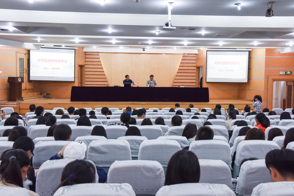 报告中,郭戈以“大学生的研究性学习”为主题,结合自身的学术研究经历,与在场师生分享了如何进行研究性学习。他从“学习+研究+活动”三个方面对如何度过一个丰富、充实的本科或研究生生活进行了介绍,强调学习好课程、做好学术研究、锻炼好身体“三部曲”相统一,倡导大学生做一个研究者、创新者和发现者。
