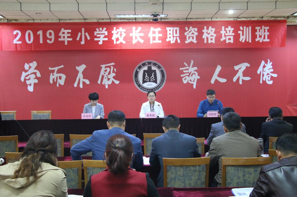 4月16日,由教育学院与北京继教网教育科技发展有限公司合办的“2019年小学校长任职资格培训班”在我校开班,教育学院党委书记姜美颖、成武县教体局师训科副主任许海燕、继教网山东办事处田昭君老师和来自菏泽市成武、巨野县的九十多位小学校长出席了开班仪式。