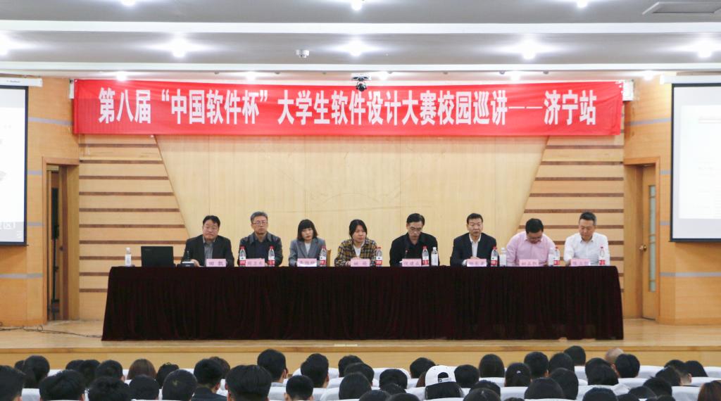 4月14下午,第八届“中国软件杯”大学生软件设计大赛全国高校巡讲济宁站在我校孔子会堂举行。大赛组委评审专家姚萌、课工场TAG(技术专家顾问团)成员、济宁职业技术学院领导、大赛组委会代表老师以及软件学院三百多名师生参加了本次活动。宣讲会由软件学院党委副书记田凯主持。