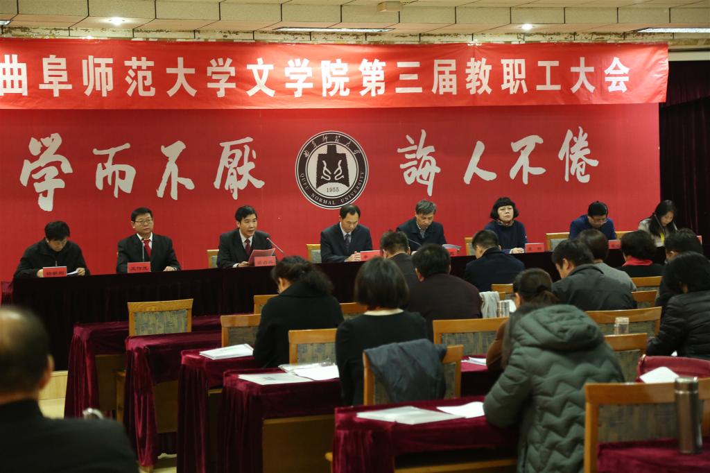12月1日上午,文学院召开第三届教职工大会。副校长辛杰工会主席王万民文学院党委书记苏占兵、院长夏静、党委副书记王作茂以及特邀嘉宾出席大会并讲话,文学院全体教职工参加会议。