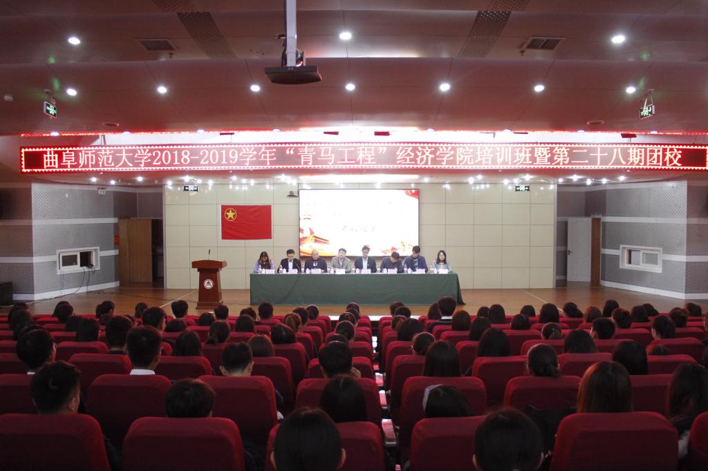 为进一步提高思想政治素养,引导学生干部坚定中国特色社会主义的理想信念,11月28日下午,“青马工程”经济学院大学生骨干培训班暨第二十八期团校开班仪式于图书馆报告厅举行,特邀日照市两城街道办事处主任、我校优秀校友于涛主讲。学校团委书记宋国栋、经济学院党委书记王民、院长刘刚、党委副书记胡一杰、团委书记尹凯、18级辅导员邱昆、15级辅导员王婧娴出席了本次开班仪式。