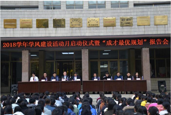 11月14日,数学科学学院2018学年“学风建设活动月”启动暨“成才最优规划”报告会举行。副校长辛杰、马克思主义学院张瑞甫教授、数学科学学院党委书记屈跃宽等出席会议,数学科学学院全体学生参加了会议。会议由学院党委副书记刘建新主持。