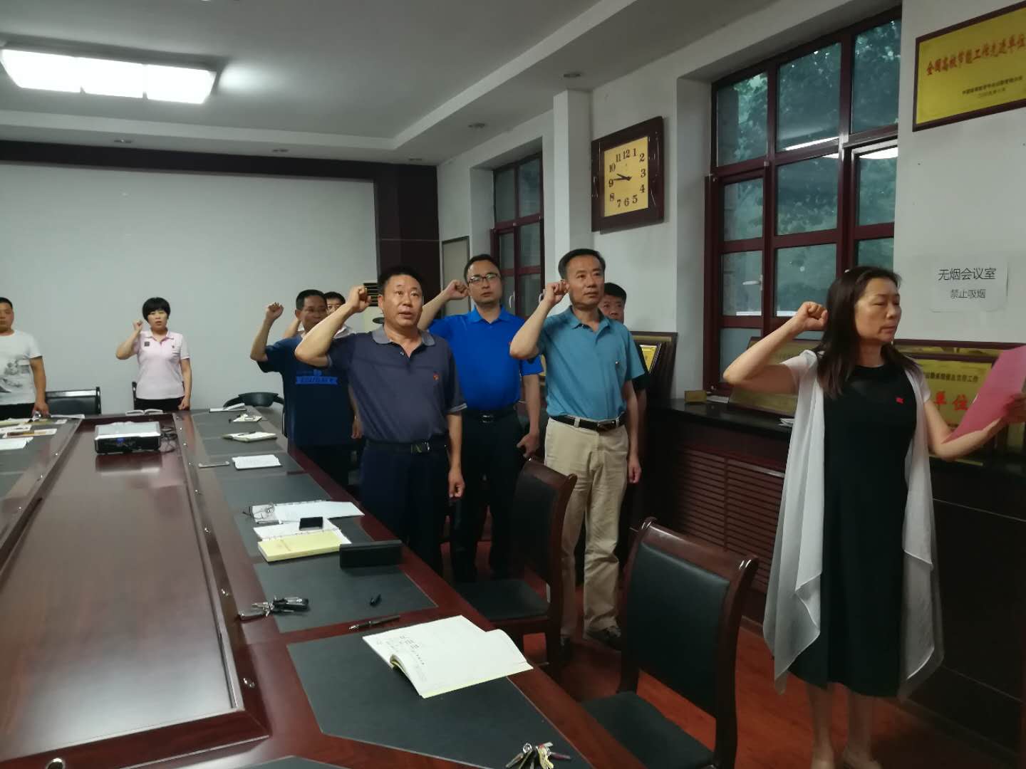 6月25日下午,后勤党委组织党委委员、各党支部委员、部分党员代表过集体政治生日,大家面对党旗,齐唱国际歌,重温入党誓词,党委负责同志致以节日的祝贺,提出今后的希望与要求,集体学习了《习近平新时代中国特色社会主义思想三十讲》部分论述,牢固树立“四个意识”,坚定“四个自信”,做到“四个服从”,切实用讲话精神统一思想、凝心聚力,推动全面从严治党向纵深发展。大家热烈讨论交流,回顾申请入党时的思想激情和奋斗追求,回顾入党宣誓时的庄严承诺和坚定决心,进一步增强党员意识和党性意识,永葆共产党员政治本色。