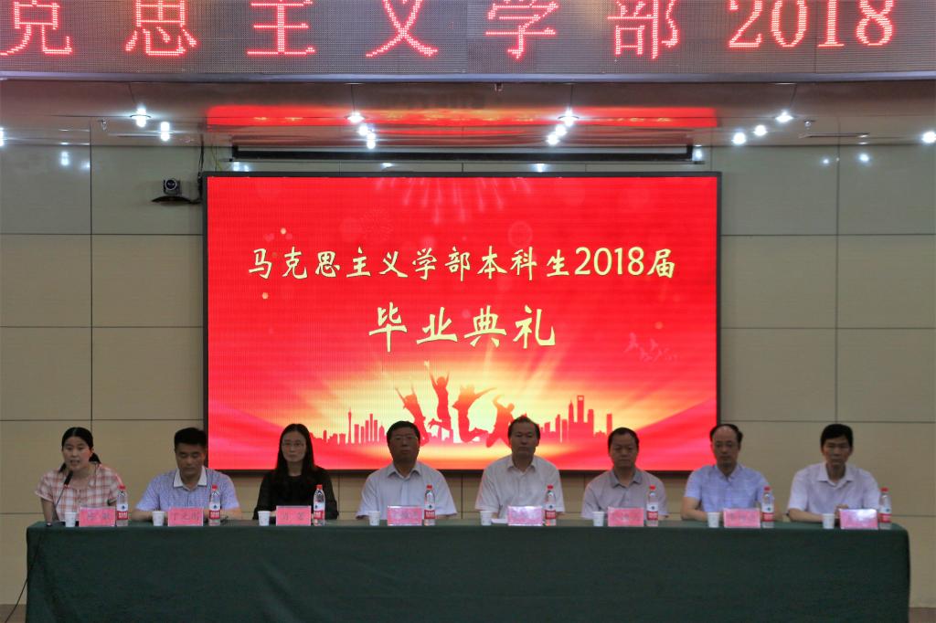 6月25日,马克思主义学部2018届本科生毕业典礼于图书馆报告厅举行,马克思主义学部主任、马克思主义学院院长李安增,马克思主义学部副主任、政治与公共管理学院王维先,马克思主义学院副院长孙迪亮,以及教师、辅导员代表及全体2018届毕业生、毕业生家长代表参加典礼。