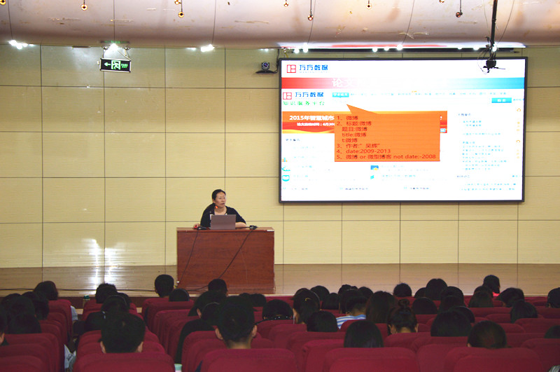 5月18日下午,日照校区图书馆在报告厅举办万方数据库知识讲座。本次讲座由万方数据库培训师郭展主讲,参考咨询部仉晓红老师主持,校区各单位的老师及研究生200余人参加了本次讲座。