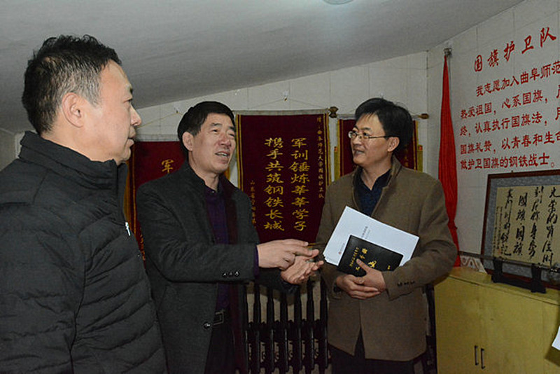 会后,在杨永明的带领下,考察组实地参观了预备役炮兵师侦察连连部办公室、国旗护卫队办公室及军事器材库。