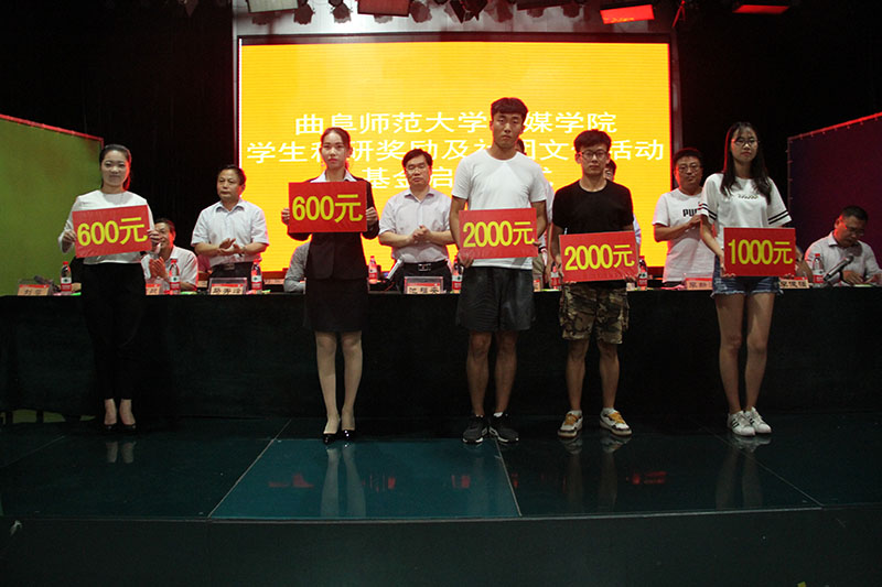 为推动大学生的科技创新,丰富大学生的文体社团活动,6月22日下午,传媒学院举行科研奖励及文体社团活动基金启动仪式。日照校区管委会主任助理、校区管理办公室主任池福安,日照校区机关党委书记、学生工作办公室主任孔令军,济宁昊宇环保科技有限公司董事长王永军,日照民通管业有限公司经理刘冰,山东今朝文化发展有限公司经理王成,山东临朐鲁艺装修工程有限公司经理李新浦,日照市东港区李飞健身俱乐部经理李飞,大众网日照记者站站长李佩强,山东德衡律师事务所日照分所执行主任、我校法律顾问、硕士生导师刘同战,传媒学院党委书记李兴保,院长马秀峰,团委副书记、日照校区学团办公室副主任陈庆国,日照校区学团办公室副主任徐正伟,日照校区学团办公室老师钟振洪,传媒学院副院长胡凡刚,党总支副书记肖龙航,副院长王焕景等出席启动仪式。