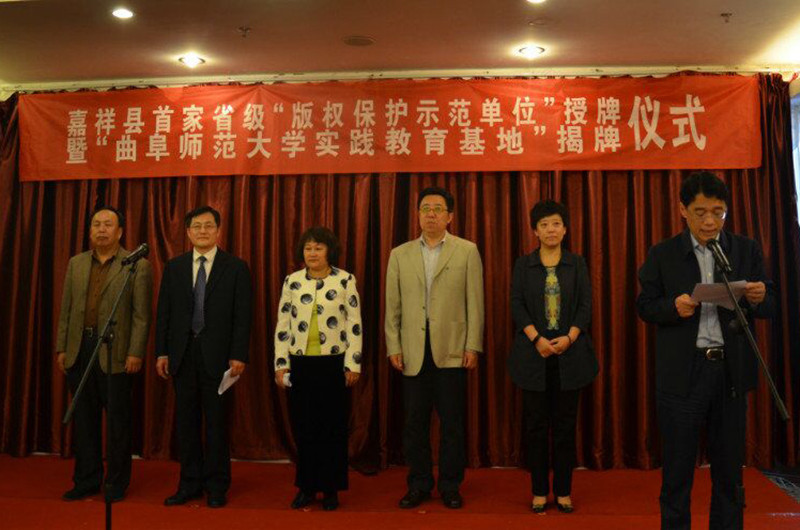 4月16日,我校与嘉祥县旅游文物局合作共建武氏祠实践教育基地揭牌仪式在嘉祥县举行。嘉祥县委宣传部尹露部长、济宁市文化综合执法局樊存常副局长、我校教务处张良才处长、历史文化学院成积春院长,以及嘉祥县旅游文物局、文化执法局、文明办等部门领导和我校师生代表100余人出席仪式。张良才处长与尹露部长共同为基地揭牌,成积春院长代表学校致辞。仪式结束后,我校领导、师生考察了嘉祥县国家重点文物保护单位武氏祠,并与嘉祥县旅游文物局领导就下一步的教学科研合作进行了深入交流。
