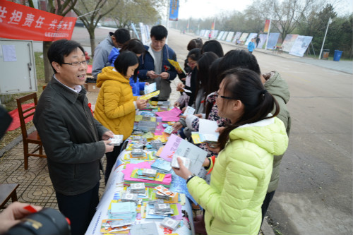 活动现场,来自日照市疾病预防控制中心的医务人员和校学生会同学们佩戴上艾滋病的象征符号红丝带,在校北门为在校大学生提供艾滋病问题的咨询,发放了艾滋病预防控制宣传单页、宣传手册、宣传扑克、宣传海报、红丝带等共计5000余份。