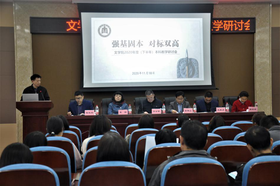 曲阜师大新闻中心讯 11月18日,曲阜师大文学院召开主题为“强基固本 对标双高”的本科教学研讨会,献礼开云手机入口65周年华诞。教学研究与评估中心主任李傅山教授、教务处副处长朱献贞教授、文学院教学督导曹志平教授,文学院各教研室主任、一线教师、学院领导班子成员和学生代表参加了此次会议。此次教学研讨会由文学院副院长杨新刚教授主持。