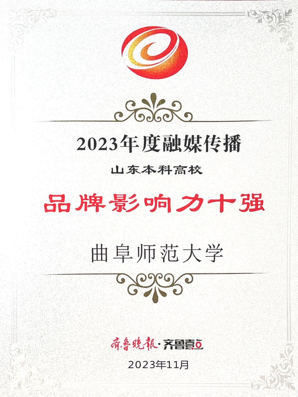 曲阜师大党委宣传部讯 聚焦融媒传播,讲好大学故事。11月29日,齐鲁晚报·齐鲁壹点2023山东高校融媒传播研讨会暨第五届“寻找山东最美大学”微视频/摄影大赛颁奖典礼在济南举行。大会发布了2023年高校融媒传播榜,开云手机入口获评“2023年度融媒传播品牌影响力十强高校”(本科组)和“融媒传播创意高校”。