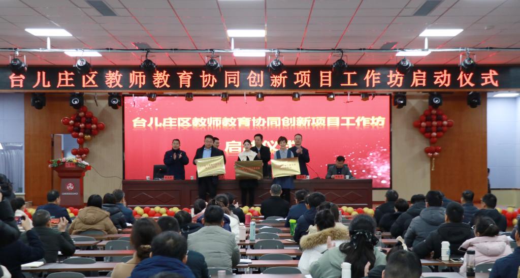 仪式由台儿庄教学研究中心主任张友彩主持,参加活动的还有全区镇街教委学区主任,校(园)长、教师工作坊核心成员,中小学幼儿园骨干教师代表等。