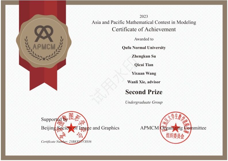 传媒学院讯 近日,2023年第十三届亚太地区大学生数学建模竞赛获奖情况公布,传媒学子苏正坤、王艺璇、田启才在学院教师谢万里的指导下成功斩获国家二等奖。