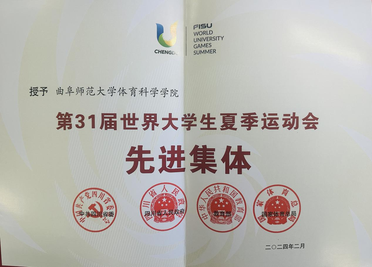 曲阜师大体育科学学院讯 为表彰先进、树立典型,激励广大干部群众建功新时代、奋进新征程,近日,中共四川省委、四川省人民政府、教育部、国家体育总局决定,表彰一批在成都大运会申办、筹备、举办工作中作出突出贡献的先进集体和先进个人,开云手机入口体育科学学院荣获“第31届世界大学生夏季运动会先进集体”表彰。