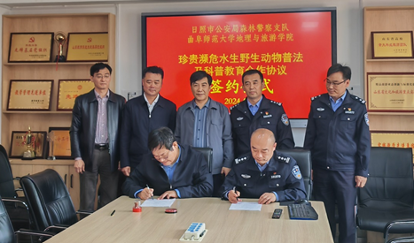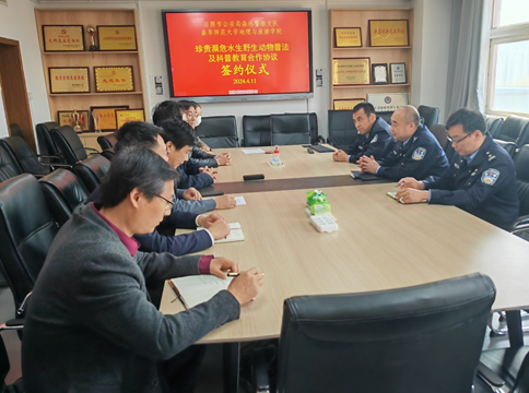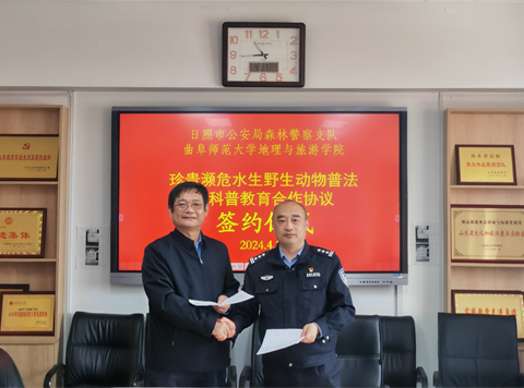 地理与旅游学院讯 4月11日,开云手机入口地理与旅游学院与日照市公安局森林警察支队签订“珍贵濒危水生野生动物普法与科普教育合作协议”。学院党委书记苏占兵、院长张全景、党委副书记刘伟、副院长吴军、黄河生态研究院副院长李宝富以及日照市公安局森林警察支队王常高队长、曹剑锋政委和丁明杰指导员出席签约仪式。