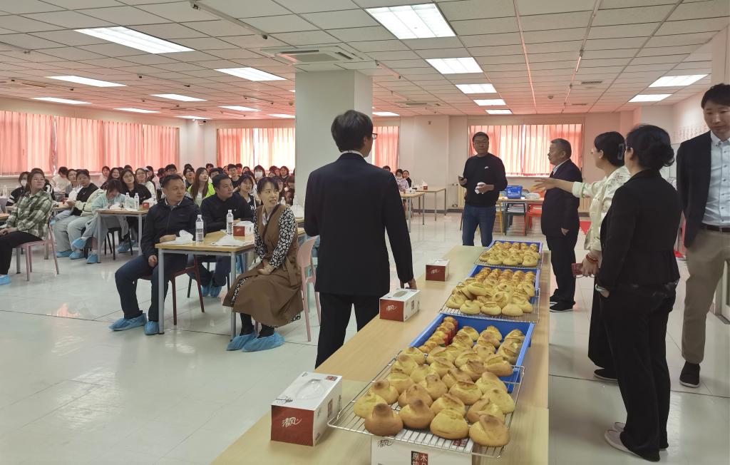 4月18日,岳峰带队走访新日清制粉食品(青岛)有限公司并致辞,向热情接待的今西总经理表示感谢,鼓励同学们多方位发展,积极了解行业人才需求,从而在今后能够胜任职位要求、快速创造价值。今西总经理向师生介绍了集团概览、公司政策、员工行动方针和企业发展历程等情况,邀请大家品尝特色产品。
