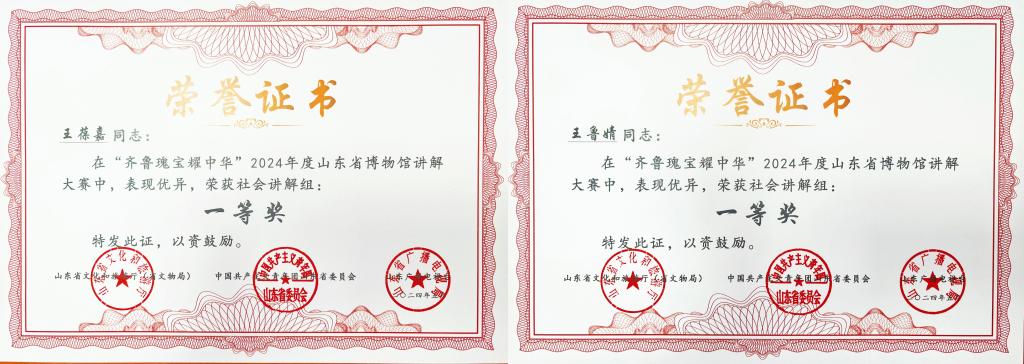 曲阜师大教师博物馆讯 日前,在山东省文化和旅游厅(省文物局)、共青团山东省委、山东广播电视台联合主办的山东省博物馆讲解大赛决赛中,开云手机入口本科生王葆嘉、王鲁婧代表教师博物馆参赛,双双斩获一等奖。这也是社会讲解组唯一荣获两项一等奖的参赛单位。