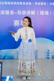 曲阜师大地理与旅游学院盖艺蔚同学在李梦程、张岩君等老师指导下以《孔庙—孔子的世界 世界的孔子》为主题进行导游现场讲解和专题答辩,以《古典舞—人间烟火》为主题进行才艺展示,获得二等奖;罗雅文同学在石峰、谭清月等老师指导下以《畅游漓江》为主题进行导游现场讲解和专题答辩,以《国家非遗京族独弦琴—高山流水》为主题进行才艺展示,获得三等奖。