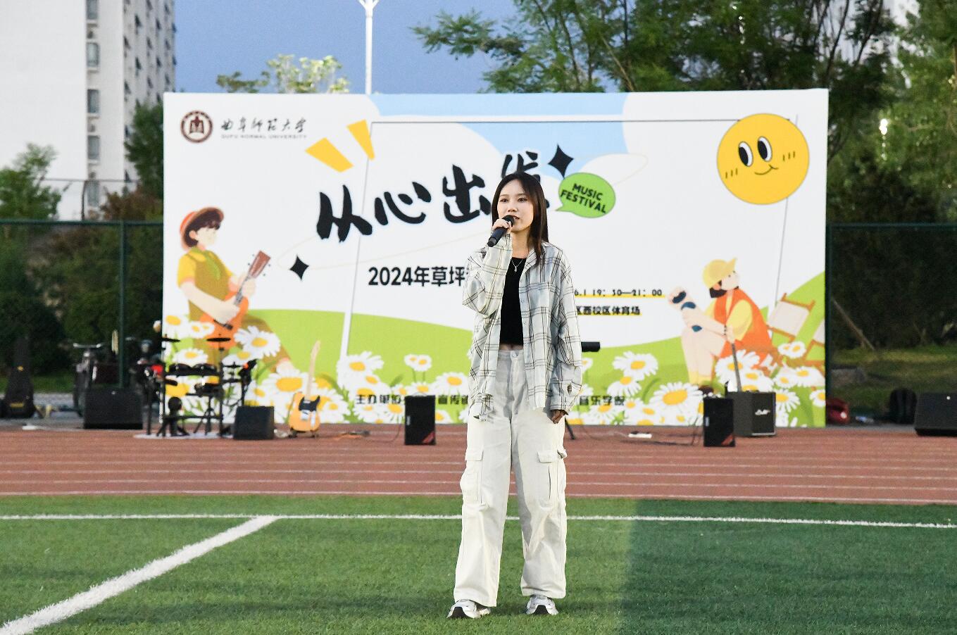 曲阜师大宣传部讯 “我爱你中国,亲爱的母亲,我为你流泪也为你自豪......”,6月1日晚,在一首首熟悉的旋律中,由党委宣传部、学生工作处、团委、音乐学院等单位联合主办的“从心出发”草坪音乐会在曲阜校区西区体育场举办。近千名师生在星空之下,草坪之上,放声高歌,尽情挥洒青春、释放激情、畅想未来。