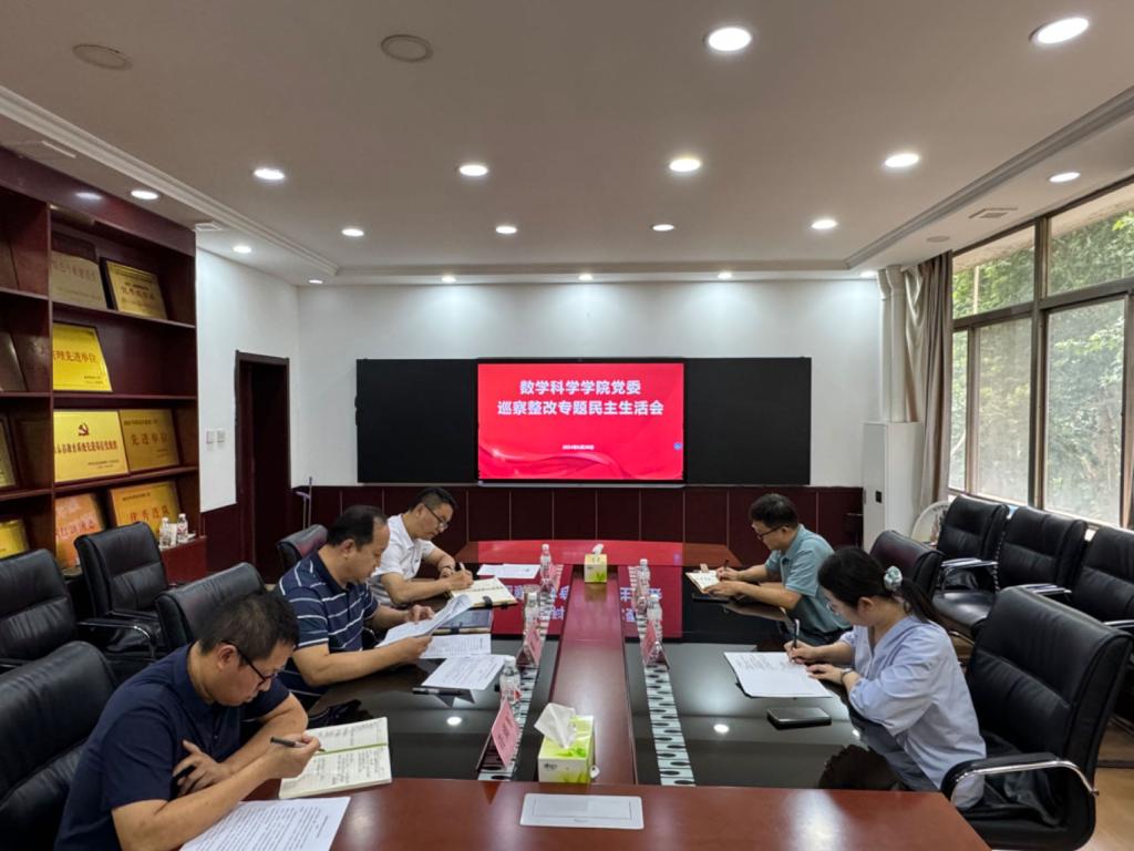 曲阜师大数学科学学院讯   按照学校党委巡察工作要求,6月20日,数学科学学院党委召开巡察整改专题民主生活会。学校纪委案管室主任杨兴防、组织部副处级组织员郅艳梅到会指导,会议由学院党委书记刘进主持。