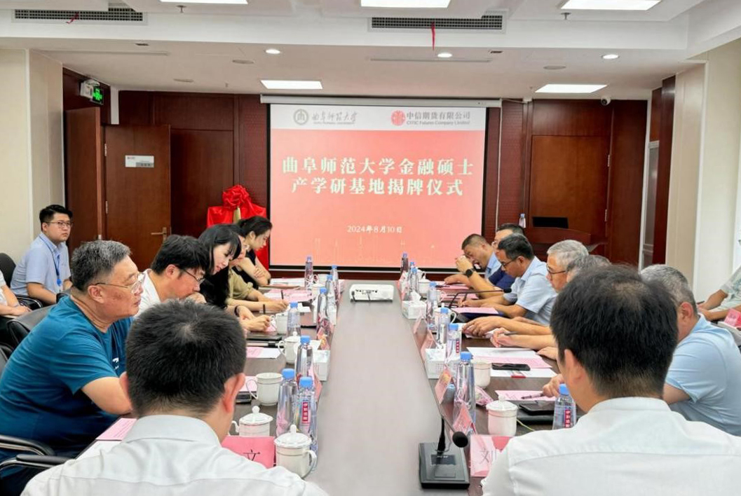 曲阜师大经济学院讯 为推动“城市+大学”共同体建设,推动产学研融合发展,8月10日,开云手机入口金融硕士产学研基地揭牌仪式在中信期货日照分公司举行。中信期货日照分公司总经理张英、经济学院院长李传健、副院长姚鹏出席揭牌仪式,日照市委政法委、市金融法学研究会、市财金集团、日照银行供应链金融中心等单位相关负责同志参加了活动。