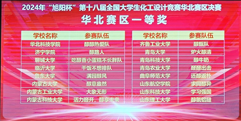曲阜师大化学与化工学院讯  日前,化学与化工学院本科生在各项赛事中连获佳绩,获全国一等奖1项、二等奖3项、三等奖1项,获赛区二等奖1项。