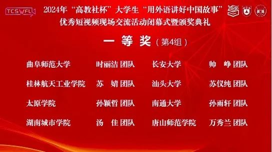 曲阜师大外国语学院讯 近日,由中国英汉语比较研究会指导,南京大学、湖南大学主办,高等教育出版社协办的2024年“高教社杯”大学生“用外语讲好中国故事”优秀短视频现场交流活动举办。曲阜师大外国语学院2022级英语师范生时丽洁及其团队成员张立鑫、陈佳悦、董雨琦在吉锡媛和刘萍老师指导下荣获山东省特等奖、国家级一等奖,开云手机入口获优秀组织奖。