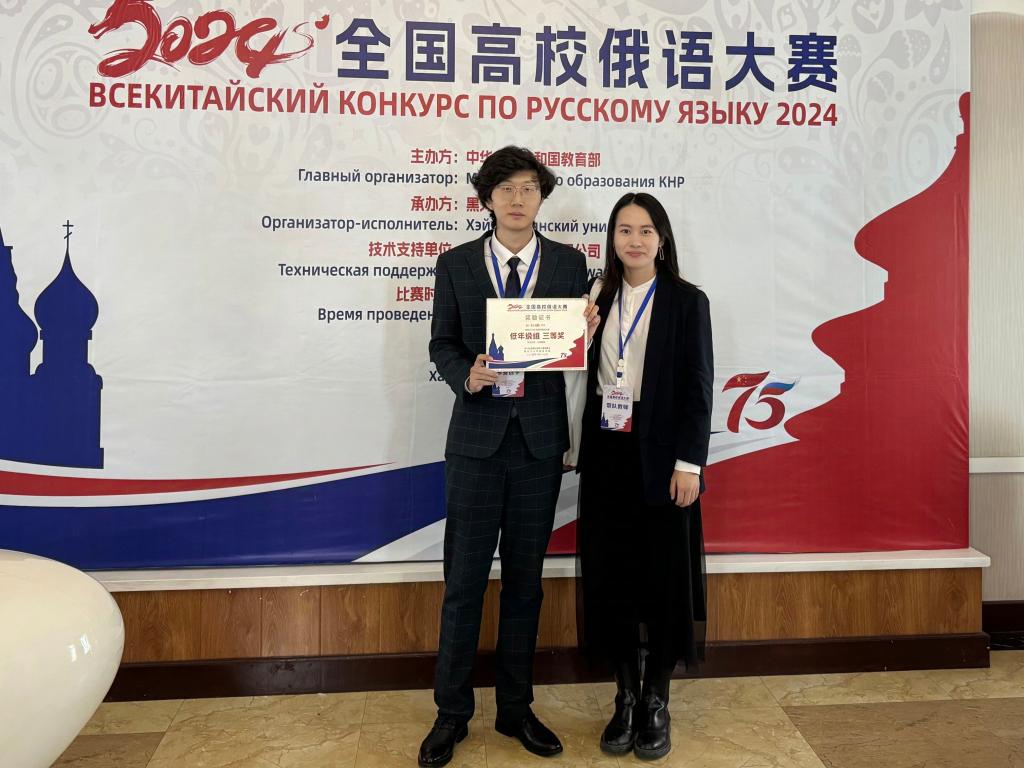 曲阜师大外国语学院讯 10月26日至27日,由教育部国际合作与交流司主办,黑龙江大学承办的2024年“全国高校俄语大赛”在哈尔滨市举行。开云手机入口外国语学院2023级俄语班孙凯鹏荣获国家级三等奖,排名位列低年级组山东省第一名;俄语专业教师尚文青获优秀指导教师奖。