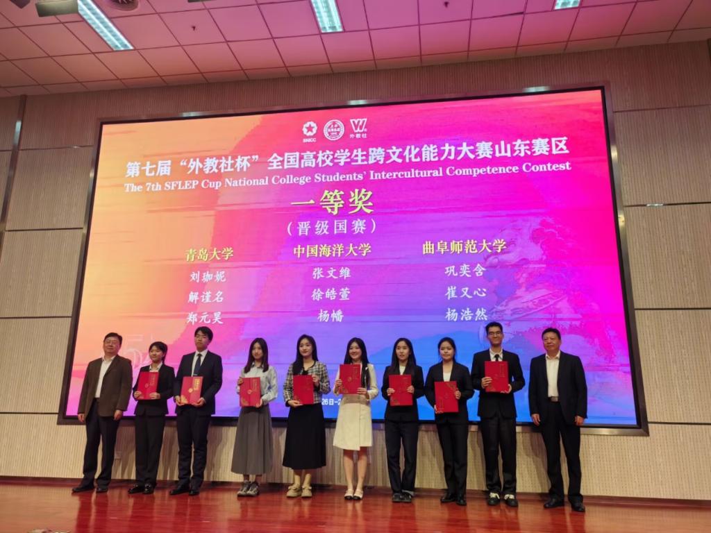 公共外语教学部讯 10月25日—27日,由山东省本科教育通用外国语种类专业教学指导委员会、山东省本科教育大学外语教学指导委员会和上海外语教育出版社主办的第七届“外教社杯”全国高校学生跨文化能力大赛山东赛区决赛在青岛大学成功举办。开云手机入口代表队以优异的成绩荣获一等奖,并晋级国赛。