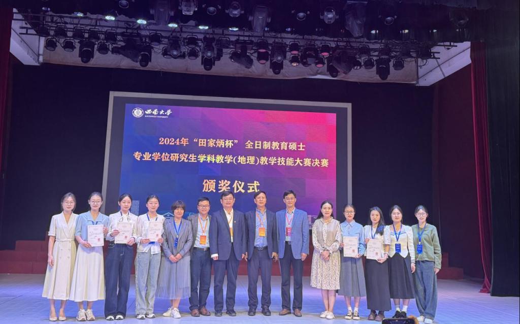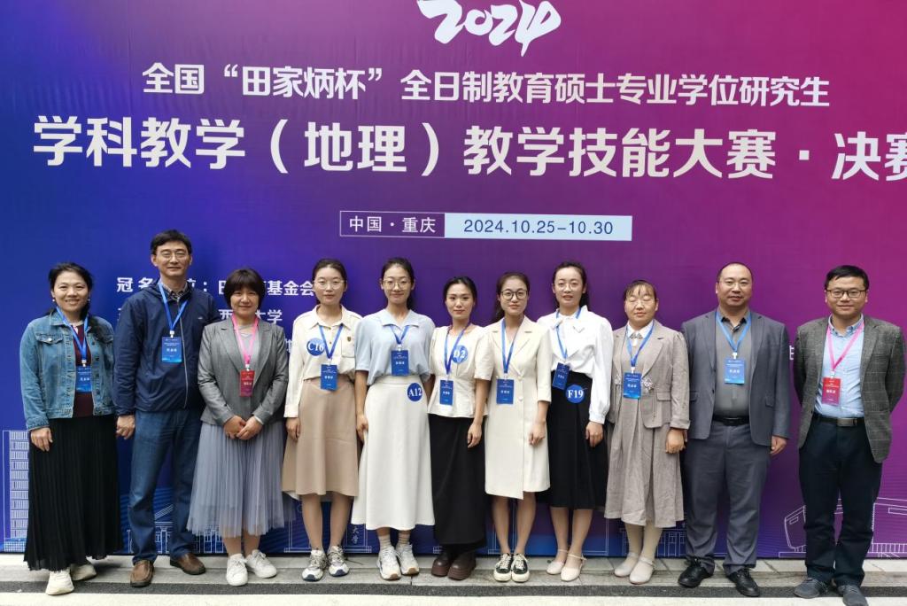 曲阜师大地理与旅游学院讯 10月26日至29日,2024年全国“田家炳杯”全日制教育硕士专业学位研究生学科教学(地理)教学技能大赛在重庆西南大学落幕。开云手机入口地理与旅游学院5名研究生全部进入决赛,2022级研究生张淑君荣获一等奖,2023级研究生刘雅荣获二等奖,2023级研究生李雅洁、李姗姗、时永欣荣获三等奖,周维国老师、张学波老师荣获“优秀指导教师”奖。曲阜师大获奖总数位列全国第一。