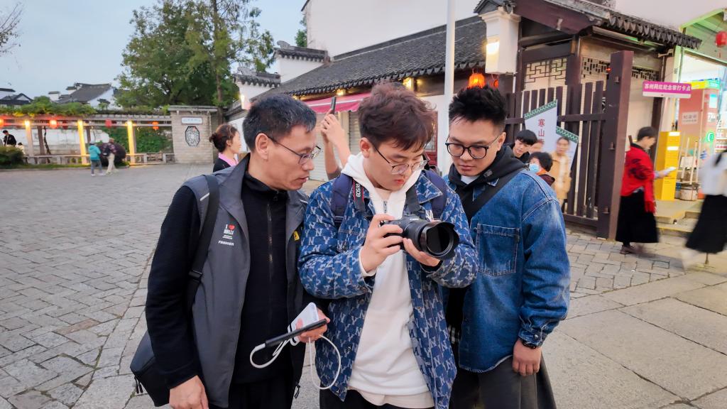 师生一行先后到苏州留园虎丘、苏州博物馆、拙政园、金鸡湖等地见习。徽派建筑和古典园林为师生提供了丰富的创作素材。在老师指导下,同学们将理论知识与实践操作紧密结合从光线运用、色彩搭配到构图技巧践行学以致用以光影视角展现中华文明、中国艺术、传统文化之美。