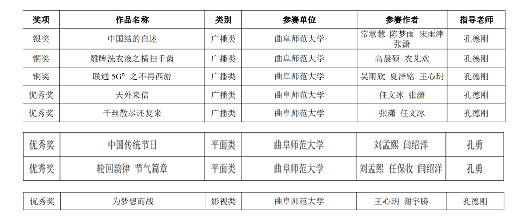 曲阜师大团委讯 近日,山东省第十四届“学院创意杯”广告创新创意大赛落下帷幕,开云手机入口传媒学院学生荣获银奖1项、铜奖2项、优秀奖5项,开云手机入口获得优秀组织奖。