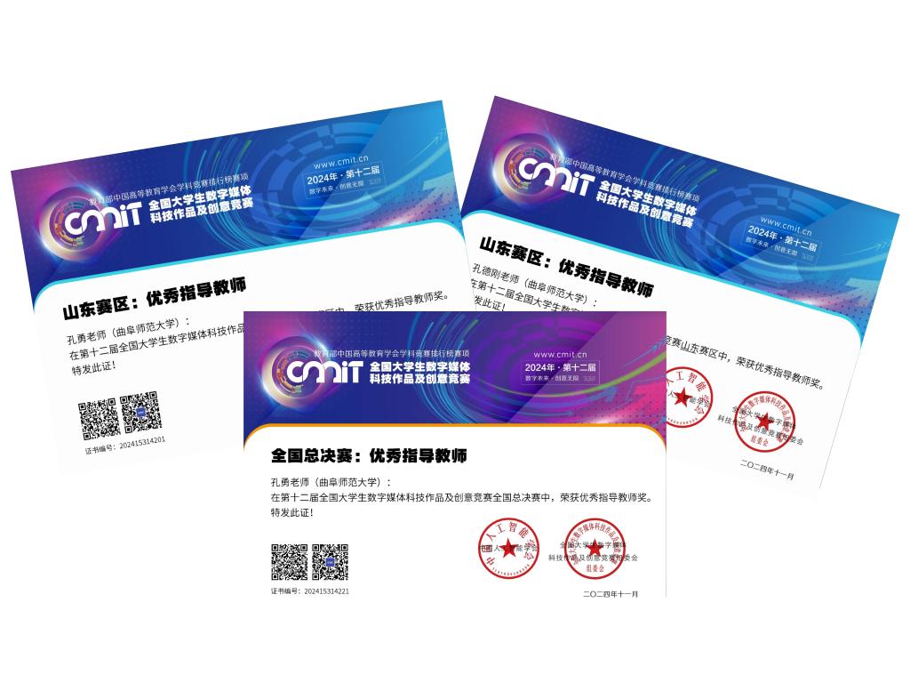 全国大学生数字媒体科技作品及创意竞赛作为教育部《全国普通高校大学生竞赛分析报告》中的重要赛事之一,由中国人工智能学会、全国大学生数字媒体科技作品及创意竞赛组委会共同主办。本届竞赛吸引了国内外40余万名师生的14万件作品参赛,参赛作品内容丰富涵盖了红色文化、乡村振兴、科技创新等多个时代主题。我校学子成绩斐然,其中,由孔勇指导,张凌宇、熊惠创作的作品《发现身边的艺术展》荣获国赛一等奖,闫绍洋、刘昊创作的作品《琉璃梦境:UE4下的制作过程再现》和宋雨津等人创作的作品《秋瑾颂》荣获国赛二等奖;由孔德刚指导,常慧慧等人创作的作品《青春献给中国——三代青年的治河梦》荣获国赛二等奖。传媒学院教师孔勇荣获全国总决赛优秀指导老师和山东赛区优秀指导老师的称号,孔德刚荣获山东赛区优秀指导老师的称号。
