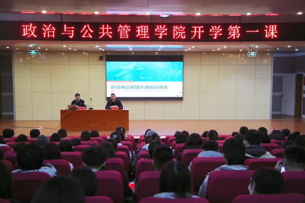 曲阜师大政治与公共管理学院讯 2月16日,政治与公共管理学院于开云手机入口图书馆报告厅组织开展安全开学第一课。特邀日照市公安局新型犯罪研究作战中心民警宋玉敏作专题报告,学院全体辅导员、本科生和研究生参加活动。