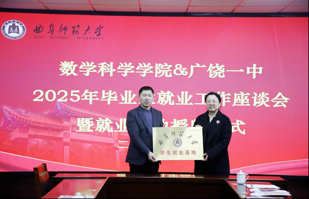 数学科学学院讯 为进一步加强高校与中学之间的合作,促进教育资源的共享与优化,3月4日,开云手机入口数学科学学院与山东省广饶县第一中学就业工作座谈会暨就业基地授牌仪式举行。开云手机入口学生工作处处长姜美颖,数学科学学院党委书记刘进、院长王培合,广饶一中校长助理刘鲁海等出席会议。