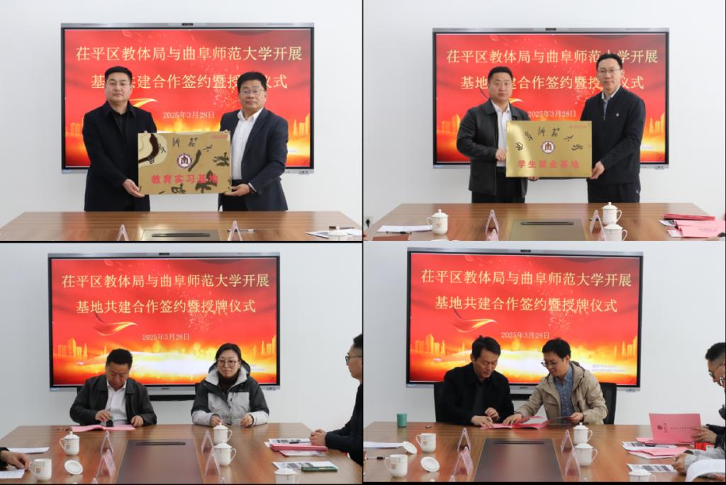 曲阜师大物理工程学院讯 3月28日,曲师大物理工程学院与聊城市茌平区教体局本科教育实习基地、学生就业基地共建合作签约暨授牌仪式在茌平区第一中学举行。曲阜师大教务处、物理工程学院主要负责人,茌平区人民政府、区教育和体育局相关负责人出席仪式。