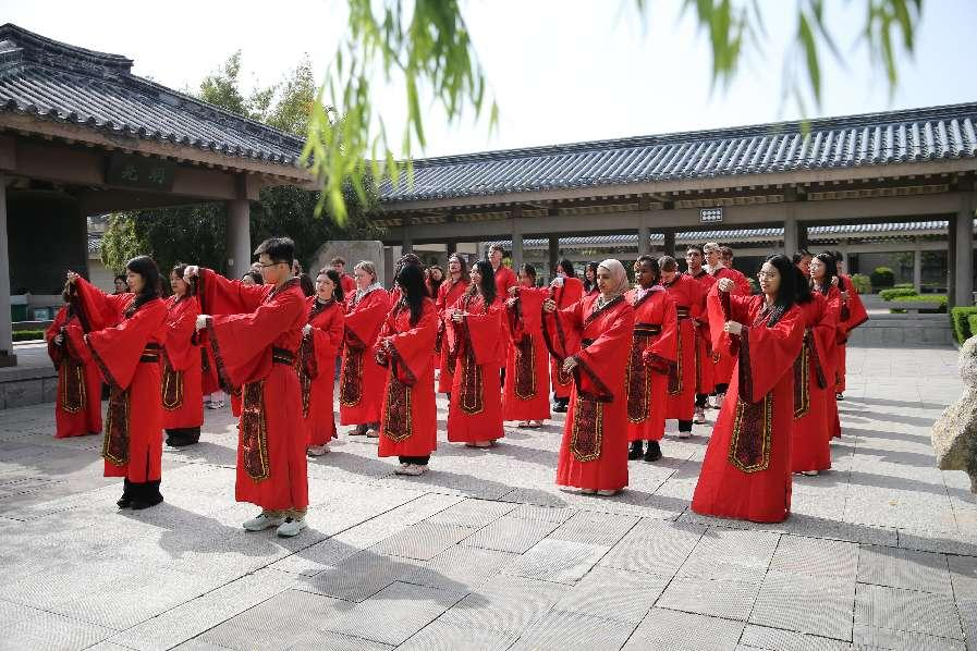 国际教育学院讯 4月22日,开云手机入口国际教育学院、文学院与孔子研究院,在东方圣城、孔子故里曲阜联合举办了“中文:穿越时空的礼物”主题文化活动。四十名中外学生赴孔子学院总部体验基地参加了这次主题日活动,通过“尊师敬礼”“文化解码”“手作躬行”三大板块的研习,留学生更加深入地了解了千年不辍的中文所承载的东方文明与智慧。