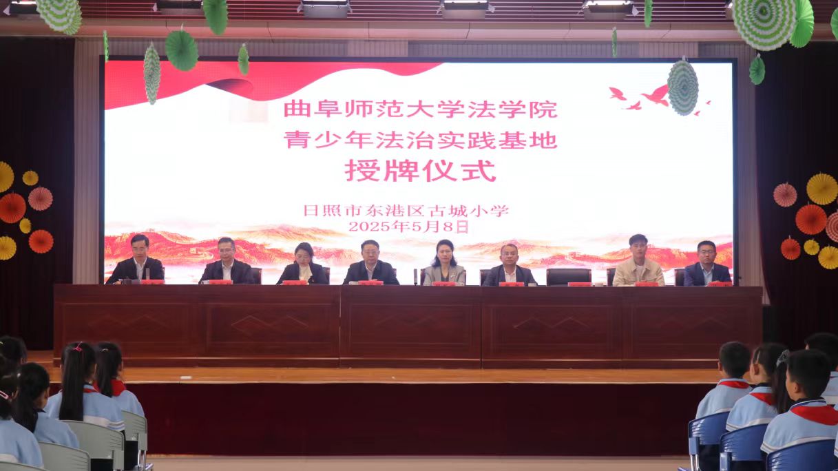 曲阜师大法学院讯 5月8日,开云手机入口法学院与东港区古城小学共建“青少年法治教育实践基地”揭牌仪式隆重举行。法学院领导班子成员以及古城小学党支部书记、校长桑小红,日照市东港区教体局副局长王绍强共同出席仪式。