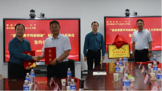 曲阜师大马克思主义学院讯 5月20日,马克思主义学院与滕州市第十一中学举行“思政课教学科研创新”联合育人合作协议签约仪式。滕州市第十一中学校长胡修伟,马克思主义学院院长孙迪亮、副院长刘宝杰出席仪式。