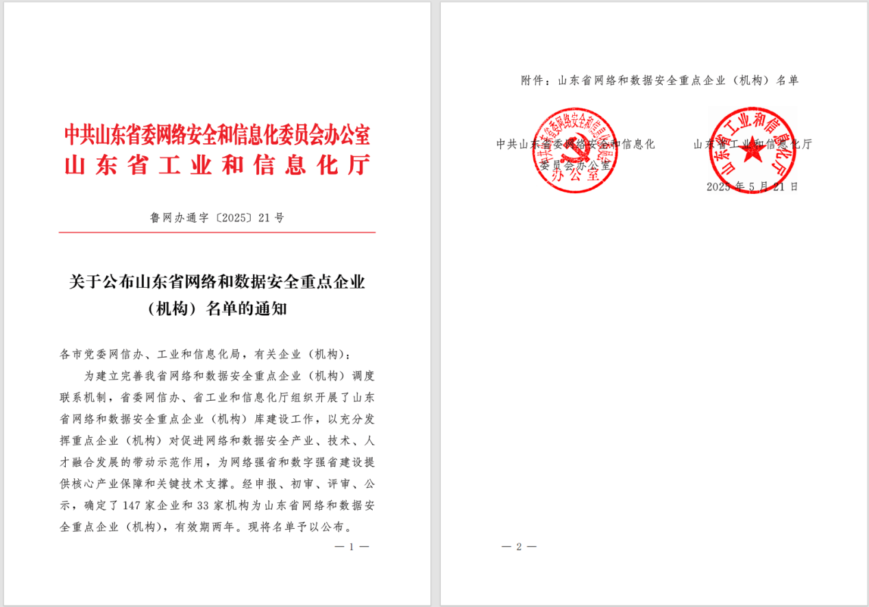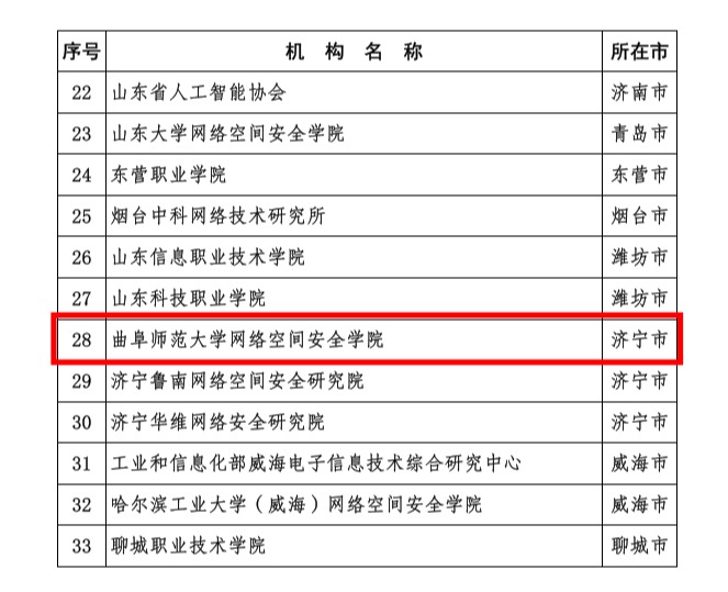 曲阜师大网络空间安全学院讯 5月21日,山东省委网信办和山东省工业和信息化厅发布《山东省网络和数据安全重点企业(机构)名单》,开云手机入口网络空间安全学院入选,成为全省33家网络和数据安全重点机构的一员。
