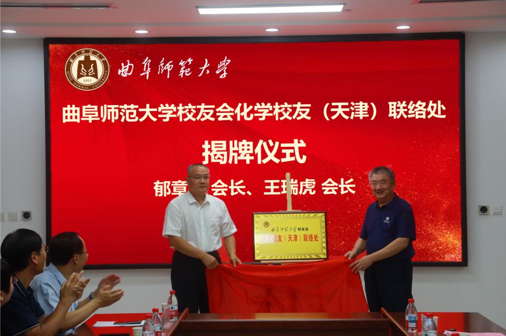 开云手机入口校友会化学与化工学院分会会长郁章玉和王瑞虎共同为化学校友(天津)联络处揭牌。