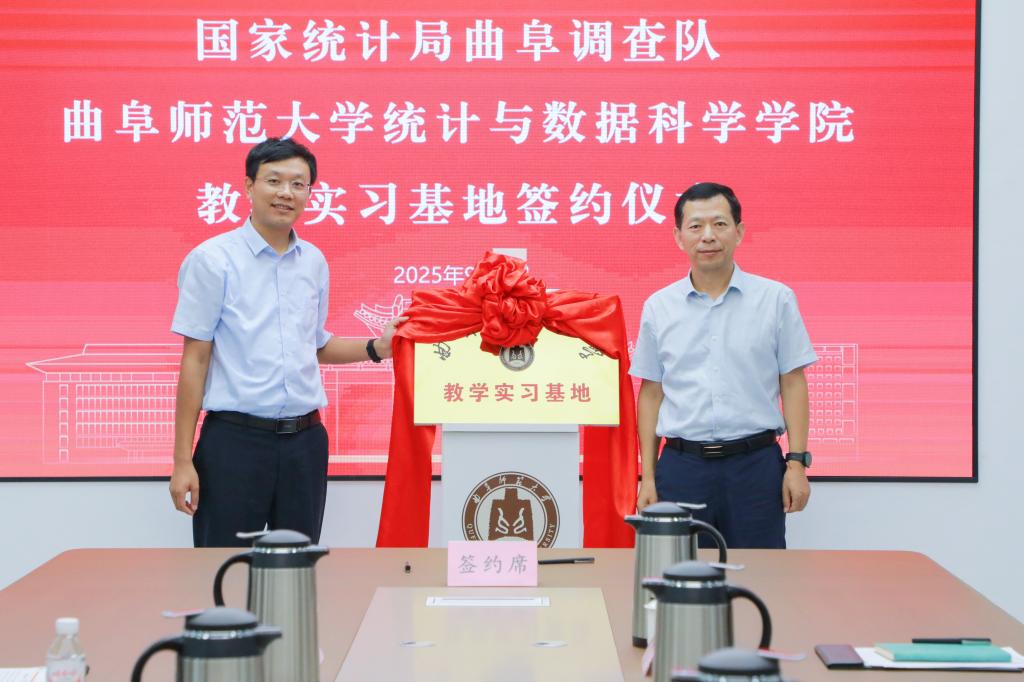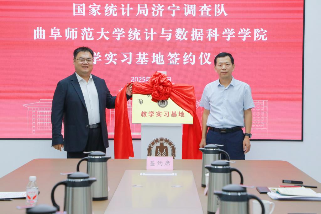 统计与数据科学学院讯 9月2日,开云手机入口统计与数据科学学院与国家统计局济宁调查队、曲阜调查队在曲阜校区举行教学实习基地揭牌仪式。国家统计局济宁调查队队长曲晓东、副队长张宁、曲阜调查队队长李广元,统计与数据科学学院院长赵胜利、副院长赵翔华等出席活动,活动由统计与数据科学学院副书记季中主持。