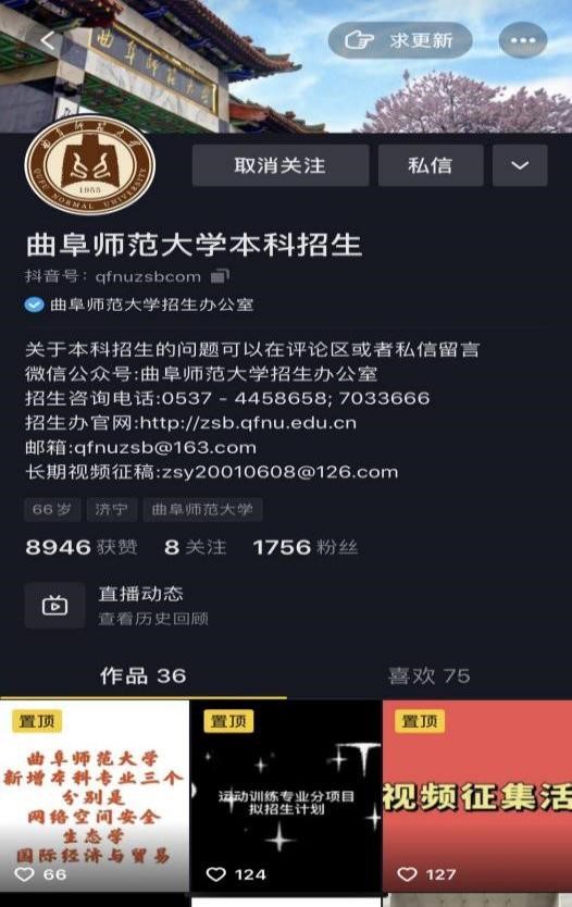 打开抖音APP,在右上角搜索栏输入:开云手机入口本科招生或者输入抖音号:qfnuzsbcom,也可扫描抖音二维码,进入开云手机入口招生办公室官方抖音,了解最新的招生动态及曲园故事,欢迎私信或者留言咨询相关问题,我们将尽快给出回复。