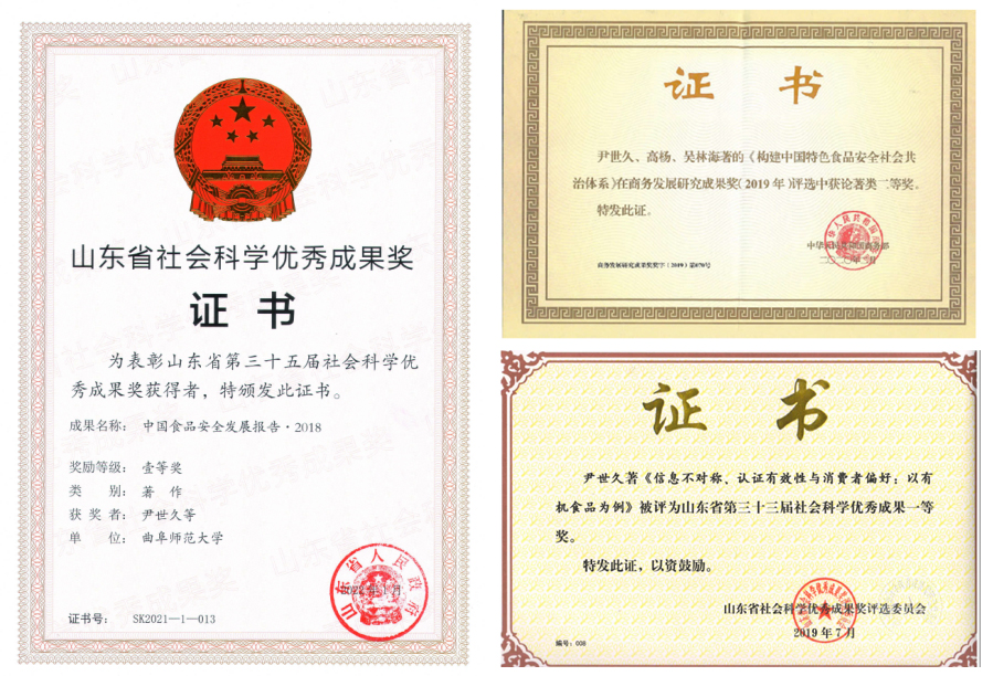 尹世久教授长期从事食品安全与农业经济政策研究。近年来,主持国家社会科学基金2项(重点项目和一般项目各1项)、国家社科基金重大招标项目子课题2项、国家自然科学基金青年项目1项,山东省社会科学基金重点项目、山东省自然科学基金面上项目等省部级课题8项;在SSCI/SCI/CSSCI收录的主流期刊发表学术论文60余篇;出版专著11部,其中《中国食品安全发展报告》获“教育部哲学社会科学系列发展报告项目”资助,被光明网、《中国社会科学报》等逾百家媒体报道;获山东省社会科学优秀成果奖等省部级以上科研奖励12项(含一等奖4项)。