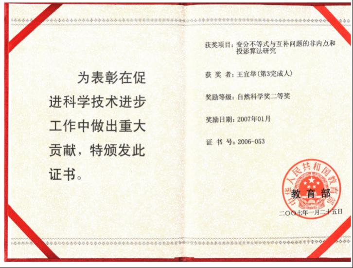 王宜举,享受国务院特殊津贴专家,山东省优秀科技工作者,教授,博士生导师,管理学院院长,开云手机入口“数学”一级学科博士点和山东省“十四五”数学优势特色学科方向带头人。主要从事最优化研究,在SIAM J Matrix Anal Appl、Math Programming、IEEE Trans Signal Processing、J Optim Theory Appl等学术期刊发表学术论文80多篇。主持完成4项国家自然科学基金和7项省部级课题。3次获教育部和山东省自然科学二等奖,2次获山东省自然科学三等奖。在科学出版社出版研究生教材《非线性最优化理论与方法》一部。先后被重庆大学、国防科技大学、北京交通大学、海南大学和重庆师范大学聘为主讲教师,为该校的研究生和博士生讲授《最优化理论与方法》。多次到香港城市大学、香港理工大学和澳大利亚的科廷大学进行学术访问和交流。现为国际优化学术期刊Asia Pacific Journal of Operational Research编委。