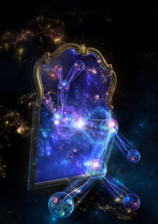 图为正反科西超子级联衰变演示图:如果物质和反物质遵循相同的物理法则,科西超子与反科西超子的衰变应该是镜像对称的,只是空间坐标是相反的。镜像之间纽带连接表示正反超子的量子关联。(图片来自中科院高能物理研究所)