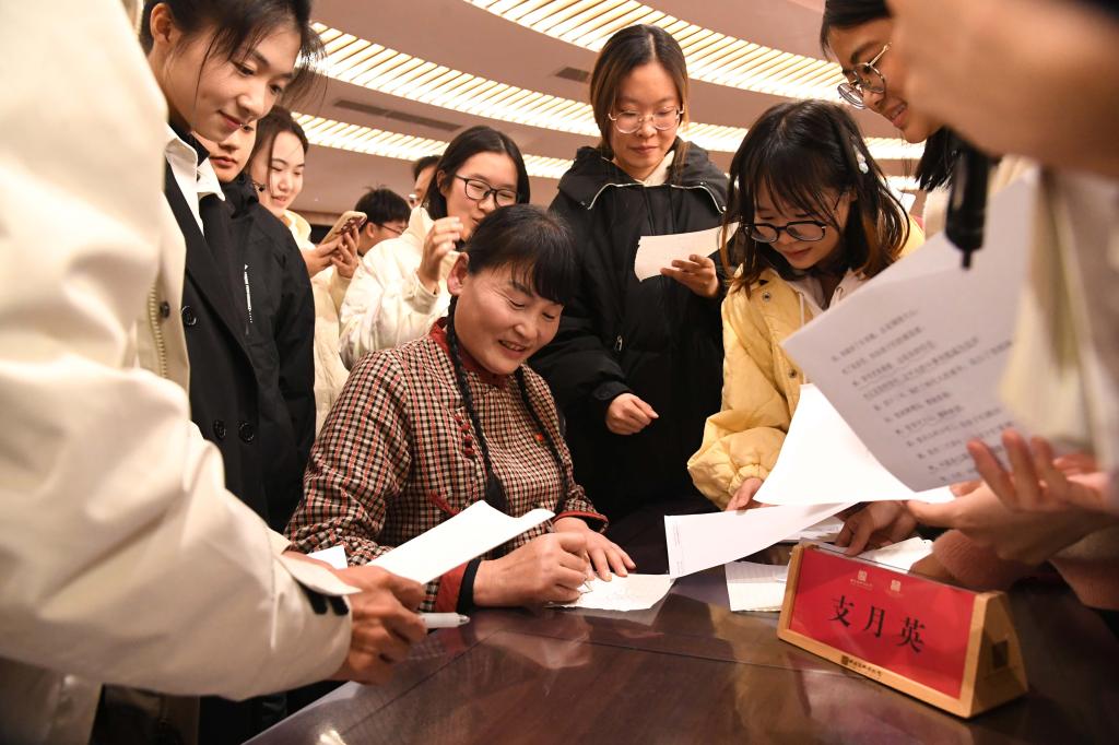 支老师声情并茂的讲述深深地打动了在场的师生。公开课结束后,现场的老师们同学们纷纷开始了“追星”,大学生围在她的身旁,她耐心地一一给大家写下祝福的话语,勉励同学们好好学习,“做限量版的、一路向阳的自己”!