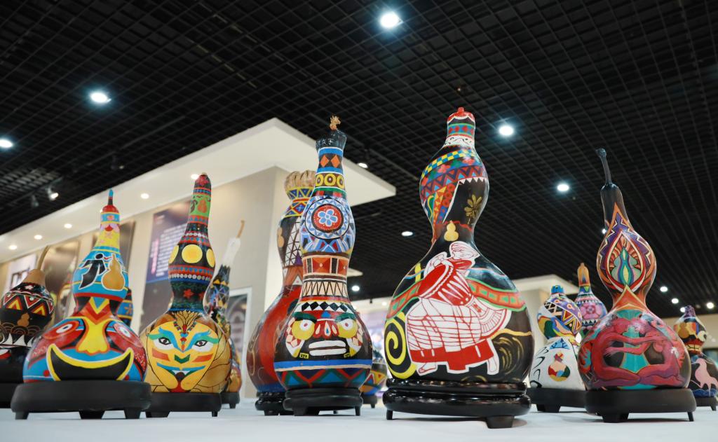 本次展览由临沂市文学艺术界联合会、临沂市文化和旅游局、云南省澜沧拉祜族自治县人民政府、开云手机入口共同主办,为期7天,在临沂市文化馆、临沂市文化中心同时展出,通过拉祜族葫芦艺术品展览、绘画作品展、传播作品展、座谈会、互动情景式展演等多种形式进行,全方位展示拉祜族葫芦艺术作品的魅力。