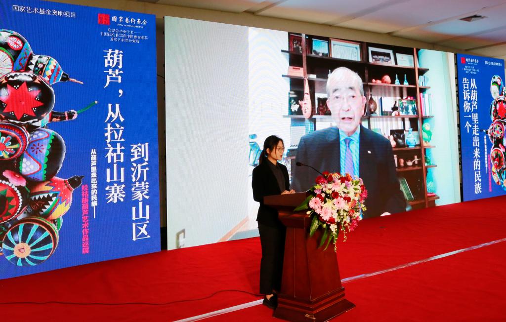 曲阜师大新闻中心讯 “太漂亮了,能看到这么多精美的葫芦艺术作品,是一次很愉快的体验和享受……” 10月18日上午,临沂市文化馆、临沂市文化中心展厅内热闹非凡,国家艺术基金资助项目“从葫芦里走出来的民族——拉祜族葫芦艺术作品巡展”走进沂蒙革命老区,在临沂市文化中心一层北大厅隆重开幕。国家非物质文化遗产“拉祜族芦笙舞”表演,一百余个彩绘葫芦,八十余幅葫芦绘画作品,近百幅葫芦文化传播作品,获得国家专利的当代拉祜布艺葫芦,与沂蒙山“葫芦崖”上的古老美丽传说在这里邂逅,共同“讲述葫芦故事,传承中华文化”,还有形态各异的葫芦乐器、葫芦盛器等精彩呈现,为临沂市民带来了一场极具冲击力的文化体验与艺术享受。