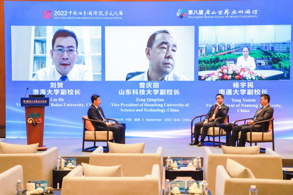 党委书记邢光,党委常委、副校长纪洪涛,出席了第八届尼山世界文明论坛开幕式,参加了2022尼山中希古典文明对话。本次中希古典文明对话的主题为“溯源与展望:文明的由来与未来”,来自中国、希腊、埃及、印度、伊朗、秘鲁等国30余位知名专家学者,在会上进行了广泛而深入的研讨。曲阜师大伊朗籍专家Javad Yaghout博士和Nasim Kharkanghamsari博士参加了此次对话会,Javad Yaghout博士登台就“古中国与古波斯的教育”在大会上作了发言,两位专家还在对话会期间接受了中国国际电视台和大众日报的专访。